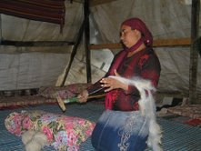“Education is the foundation of any progress”, says Salima as she spools her wool. She is currently working towards completing her high school diploma. For Kim, the London-based carpet designer, and her three daughters, meeting Salima in this desert village was a profound lesson in the strength of these normally hidden women.