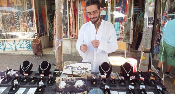 Really it depends how much of your time you have spent in art fairs and how much you have seen in the past. With a small amount of my time here I haven’t had that much time spent seeing Art. I walked up and down the full stretch of the market before I noticed a guy chiseling away at something which I couldn’t even see because it was so small. Turns out it was a coin. Then I began to look at what was on his table. There were coins from all over the world. What caught my attention the most was the 20 pence coin from the UK, where it was the queens head with space around her head all chiseled and gone. It was made into a necklace , as an elegant piece of his jewelry collection for display.Something so simple that we spend or collect every day lying in your purse or wallet and it has been made into a fine piece of jewelry , that everyone would ask about. It’s amazing for me to see that something so basic such as coins can be turned into something you wear as jewelry.